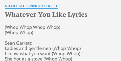 T I Paper Trail Whatever You Like from pics.me.me I'm talkin' big boy rides and big boy ice let me put this big boy in yo life thang get so wet, ya hit so right let me. Thanks to dt dave for correcting these lyrics. T.i whatever you like lyrics & video : And we can pop bottles all night. They be trickin', they tell them girls. Explore 1 meaning or write yours. Baby, you can go where ever you like (you like). A lot of you like my lyric videos, so i have another one for you!